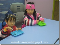Since our school is fairly new, we only have 9 morning kindergarten students in 3 classes. Instead of hiring someone to cook at the school, lunches are catered and delivered each day. Our lunches come in the black boxes and the students dishes are shown in the picture above. Each student brings a lunch box/tray from home each day. The rice comes in a small cooler that keeps it warm, although I see our lunch boxes get nuked in the microwave each day, with the tinfoil in it!